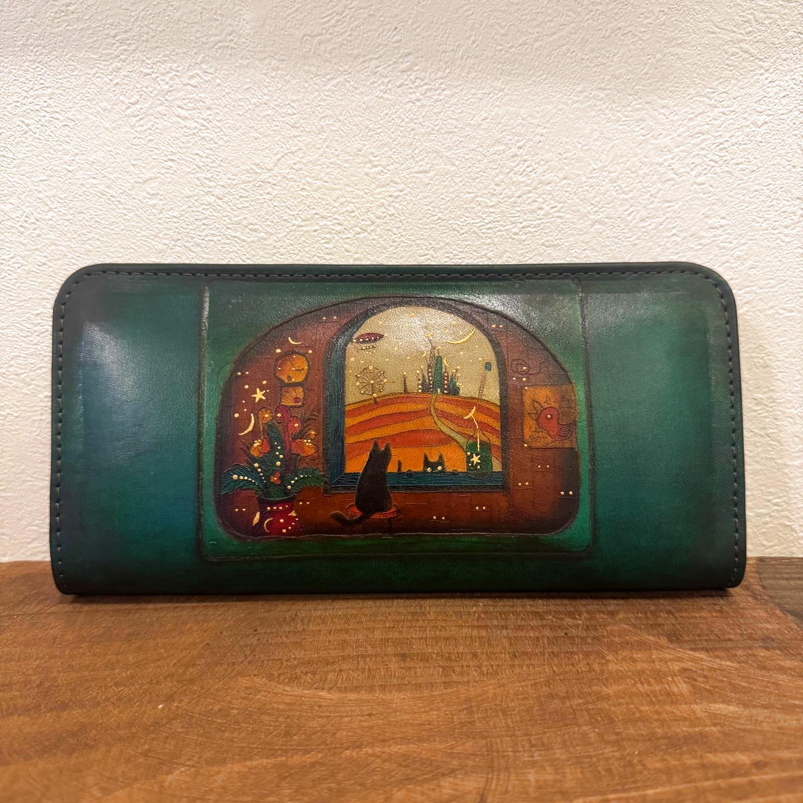 表の絵の部分は銅版で絵を作り、それを革ににプレスしそこに色付けをしていく、という手法をしています。